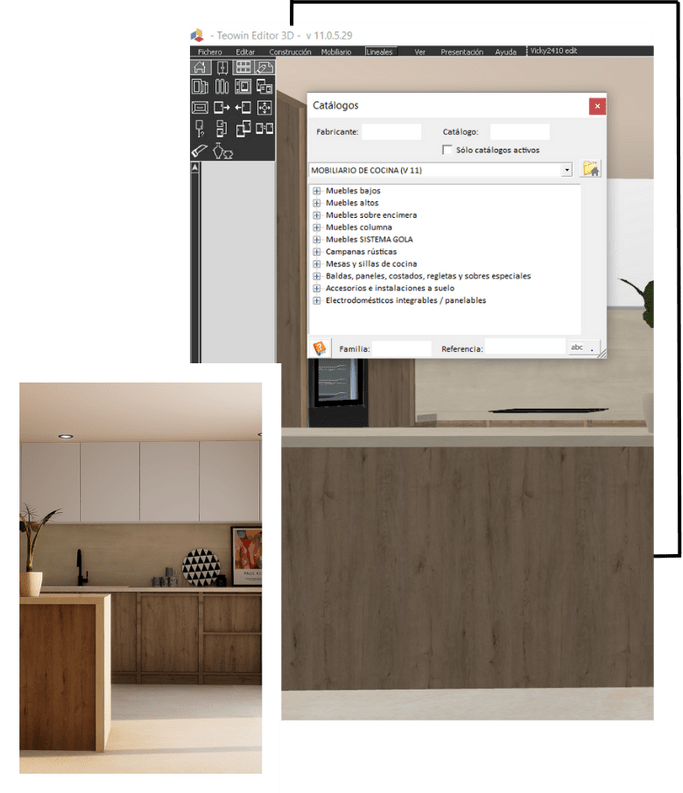 Aquí es donde se produce la verdadera revolución. Antiguamente, el carpintero tenía que «redibujar» lo que el diseñador le enviaba para poder fabricarlo. Hoy, herramientas como Teowin permiten transformar el diseño interior en componentes listos para fabricar con un solo clic.
