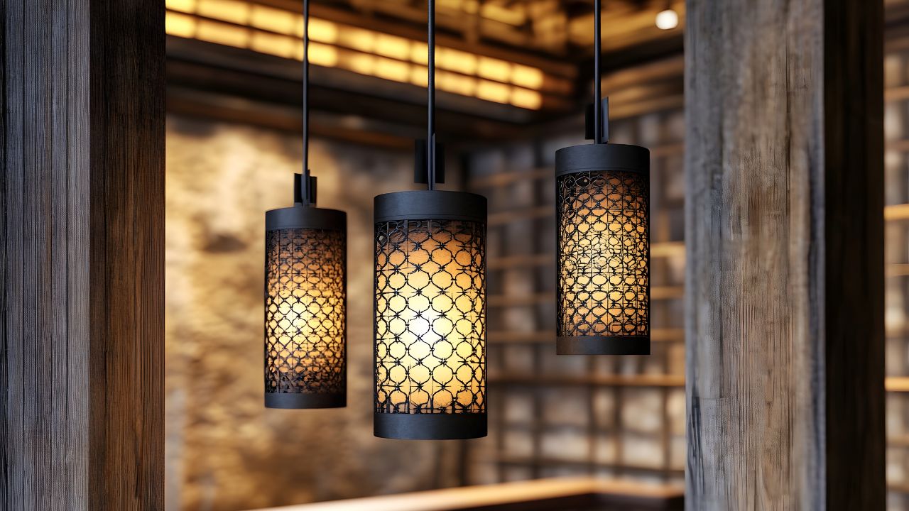 - Lámparas colgantes de fibras: generan una luz cálida y difusa que potencia la atmósfera acogedora.